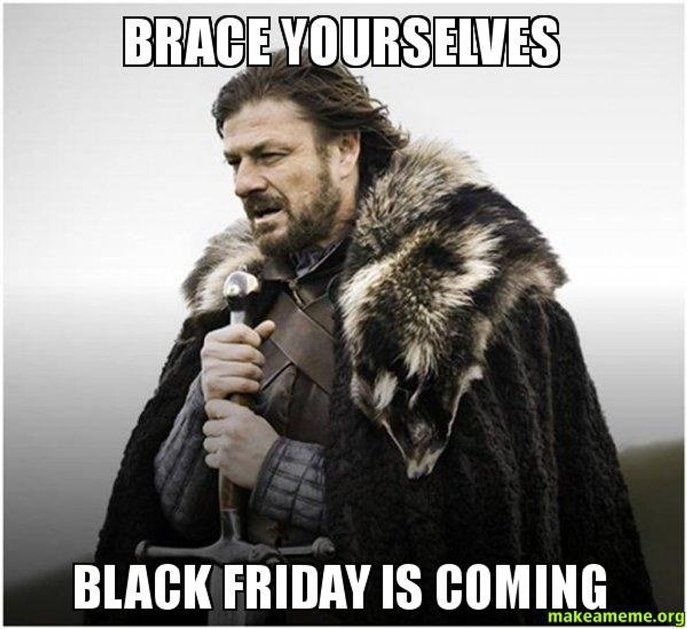 I understand that participating in Black Friday is some families' traditions and they do it every year and have saved so much money and created so many memories standing in a long line while freezing their tails off. And that is great. But by making Black Friday start on Thursday, the day of Thanksgiving, it is taking so many people away from their families and traditions.