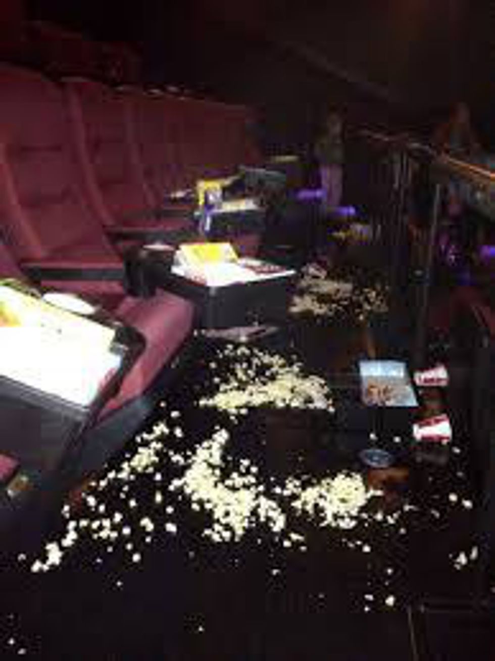 Have you ever noticed that before you sit down you have to wipe it down with your hands or a napkin because there's popcorn on the seat? Well let me tell you...the seats are never cleaned, even the leather ones. They are just replaced every 10-15 years. So when you think about it...you could easily get sick, or even lice because lice love warmth, and would love to jump in your hair. Remember that next time.