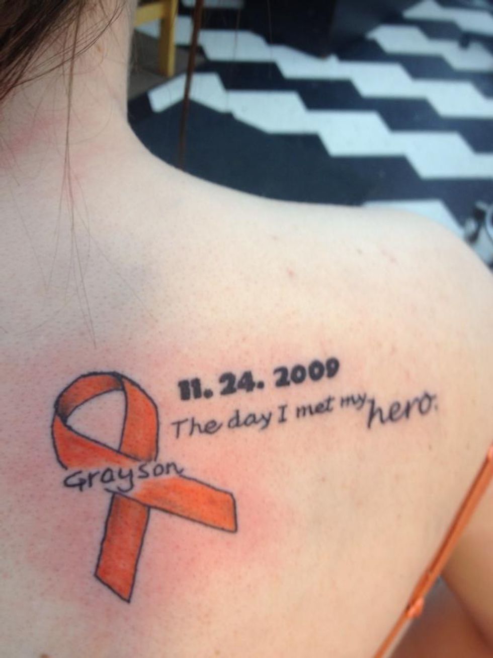 The tattoo had the day that my sister was diagnosed and the phrase, "The day that I met my hero." It was one of the greatest days of my life, knowing that I had something so meaningful etched into my skin forever.