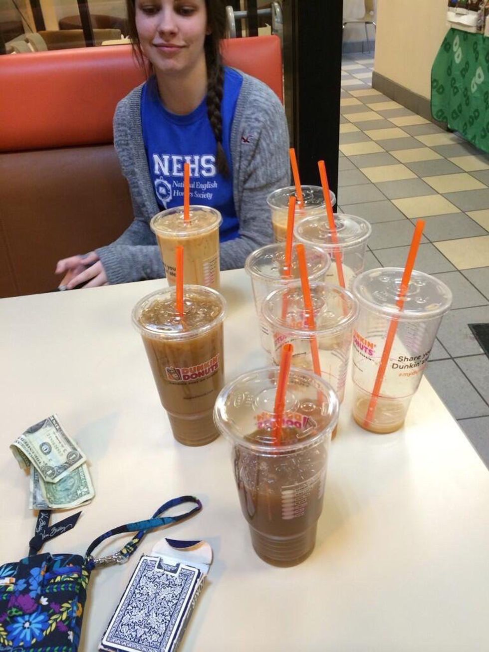 I knew that grabbing a coffee with a friend would instantly brighten my mood. I’ve had the majority of my most serious conversations over an iced coffee. The booth in our "home Dunkin'" has always offered a warm and comforting atmosphere, whether we're crying, laughing, or laughing so hard we cry. When the exhaustion is killing you and giving up seems like the best option, coffee reminds us how strong we are and to persevere. All-nighters in the library would be impossible without the magic brew. College life taught me that there is no such thing as too much coffee. Except maybe that one time...