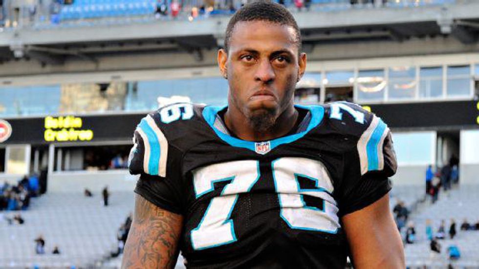 One of those 12 players who remained on their teams' roster is Greg Hardy, who, while playing defensive end for the Carolina Panthers, was arrested for assaulting and communicating threats to his then-girlfriend Nicole Holder in May 2014. He allegedly grabbed Holder, threw her into walls and onto furniture laden with assault rifles, and choked her in his Charlotte, N.C. apartment.