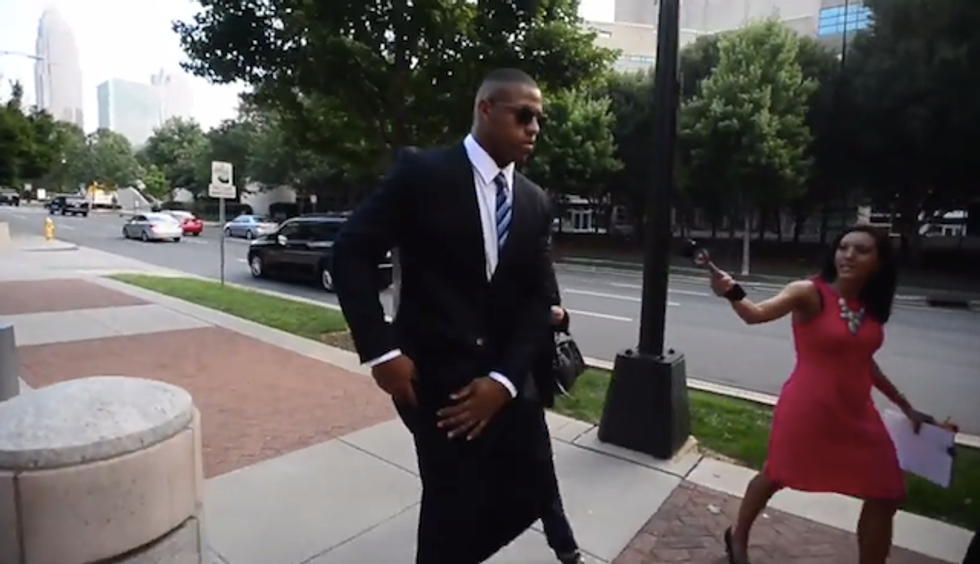 The case was closed when Holder made herself "unavailable" to testimony. Hardy was suspended for 10 games for "violating the NFL's personal conduct policy." An arbitrator fought it and had it lowered to four games, even after the NFL saw the photos. Four football games for threatening his girlfriend's life. No jail time, no fines, nothing. Just a minor suspension.