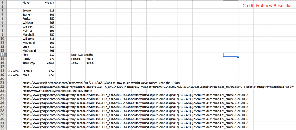 Greg Hardy is 6'4" and approximately 280 pounds. Nicole Holder is 5'10" and approximately 110 pounds. Do inspirations and leaders brutally abuse women smaller and more than half their size? A quick math calculation shows that the 13 players who were arrested and/or charged with domestic violence-related charges average a weight of 253.2 pounds. The average male weight is 195.5 pounds. The average female weight is 166.2 pounds. These football players are about 58 pounds heavier than the average male, and 87 pounds heavier than the average female. Imagine trying to defend yourself against someone who has 58 to 87 pounds on you.