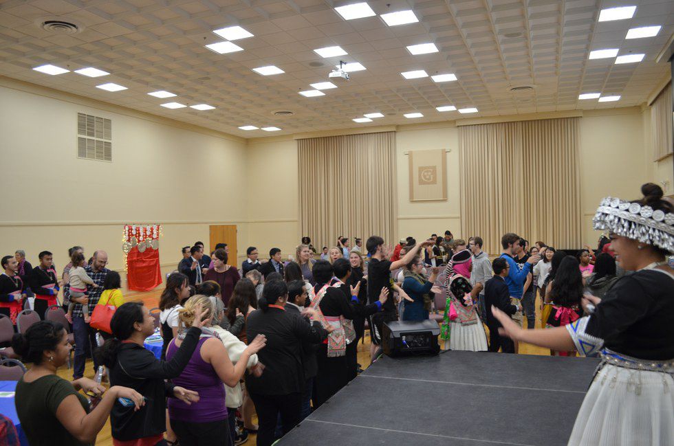 2016-2017 Gustavus Hmong New Year Goers salavan dancing to wrap up the event.