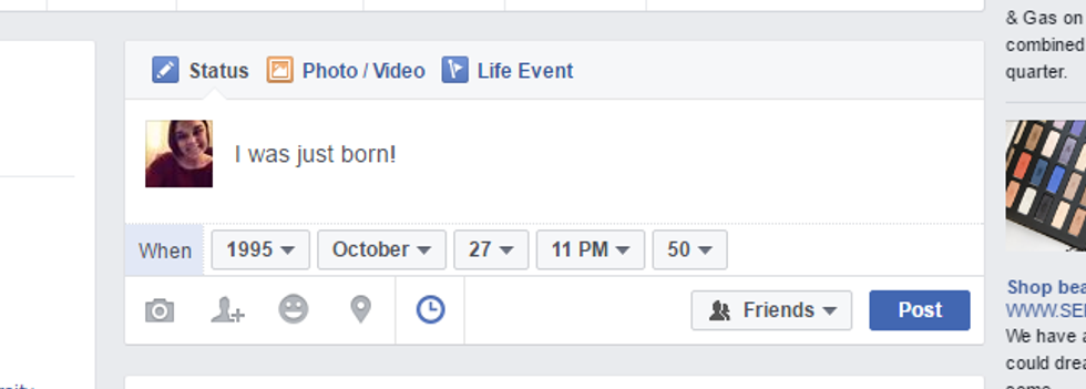 You can choose to employ this feature when you're typing out your status on your profile (because it doesn't work when you're sending a post from the top of your timeline). After typing what you plan to publish, select the little clock next to the location setting and you're free to date and time your post to whenever you deem fit.