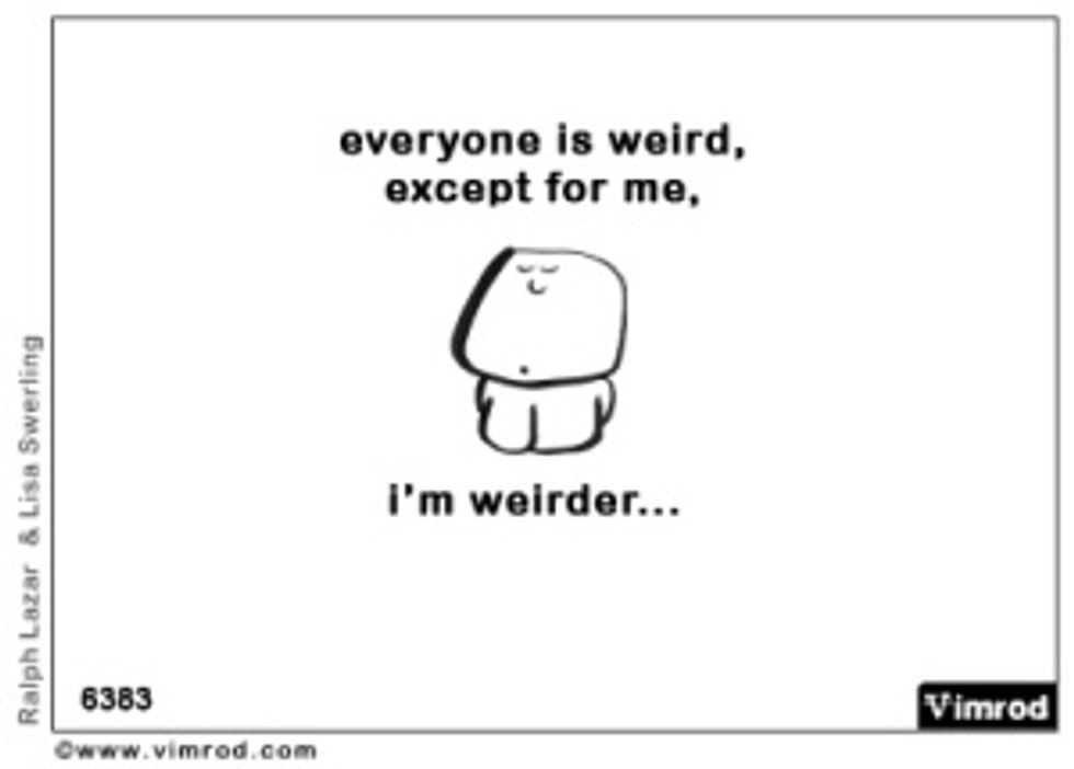 Now I'm not saying that's a bad thing. I'm saying quite the opposite actually. Weird people make life more fun. Everyone is weird, but the amount of weirdness per individual is what varies. Here are a few reasons why being weird is a good thing: