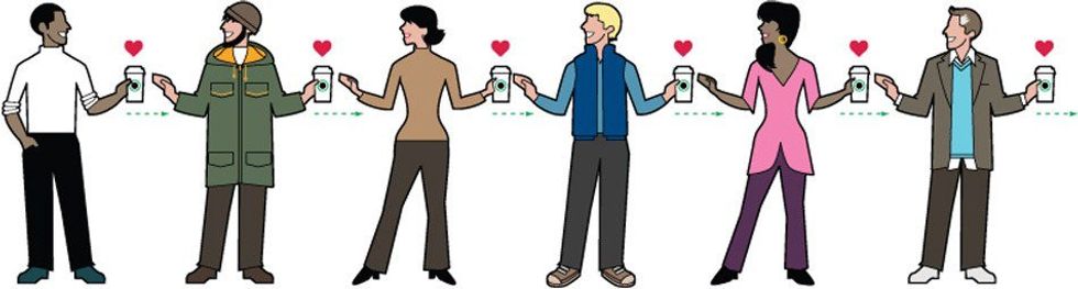 It might sound so silly, how completely and totally happy I was, but let me tell you why. Whenever I turn on the TV nowadays, it's all sad, negative and downright terrifying. Sometimes when I go out in public, I overhear conversations that I wish I wouldn't have, because of how rude or terrible they are. On social media, people are constantly fighting and tearing each other down. There's body shaming here and racist remarks there. It honestly just makes me sick. Yet on Thursday, a stranger cared, and it warmed my heart. They had no clue who I was, what religion I am, what my political views are and they still bought me an overly priced name-brand coffee.