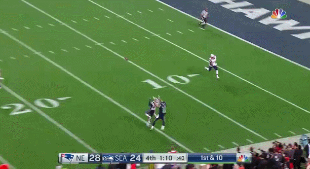 Lets go back to Super Bowl XLIX. It's second and goal and there's only 25 seconds left. The Seahawks have one of the best running backs in the NFL. I can think a little better, only now I'm trying to figure out a route to the door that lets me avoid as many people as possible. My plan was to watch the Seahawks score and Tom Brady throw one desperate Hail Mary, then be in my car on the way home before the two coaches finished shaking hands. Wilson snapped the ball and, going against all logic and reason dropped back to pass, and it took me a few seconds to comprehend what happened next.