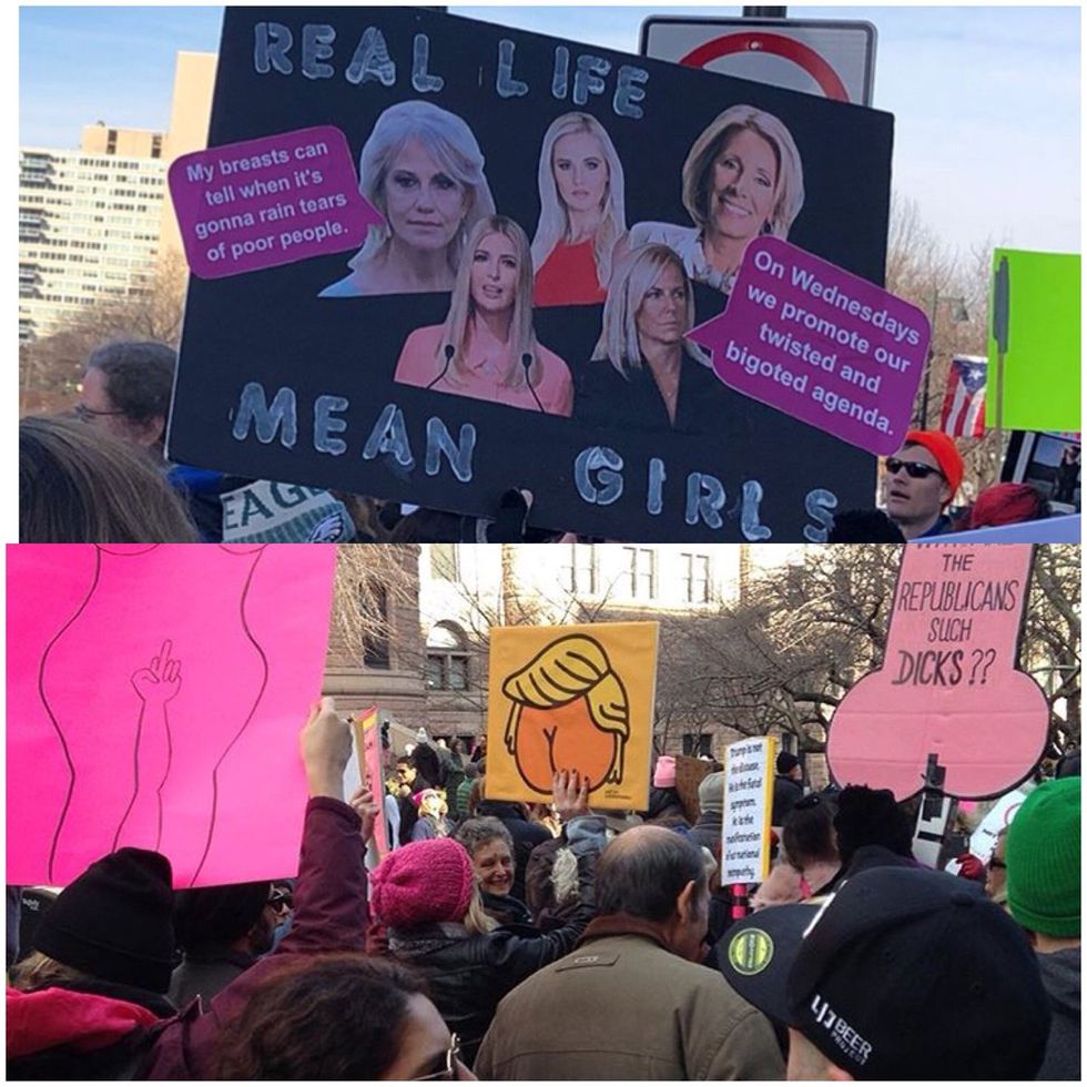 "Yeah, nothing says “female empowerment” like a bunch of actual mean girls demeaning and degrading and delegitimizing successful and accomplished women, right? It’s disgusting. The women you are bashing on your signs and with your chants don’t think like you, so we are less than you? Are we the problem? We aren’t "real" women?"