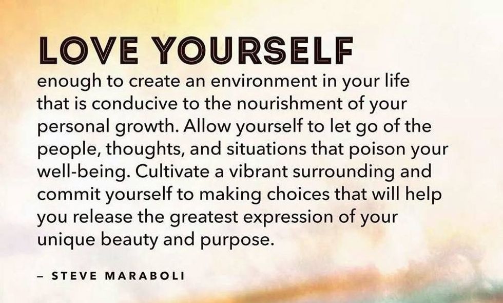 I once thought that I needed to have someone there for me at all times to make me feel safe and complete. I thought I was in love with someone I knew I would marry one day at that time. He was my best friend and the love of my life. There was just one problem; I had my own problems and issues inside me that were not fixed. I eventually started to realize after two years that I just was not happy with who I was and what I was doing with my life. I had someone there for me, yet I felt so alone at the same time. How could I love someone if I did not love myself at all? I felt broken, and there was nothing that my significant other could do to help me. The only one that could help me was myself. That is when I knew it was time for me to be on my own and figure out why I was feeling this way. I still feel the same way, but I am working on it. It is not something that will go away or be fixed over night. It takes time, patience, experience, meeting new people, and expanding my horizons.