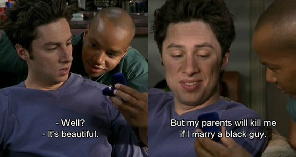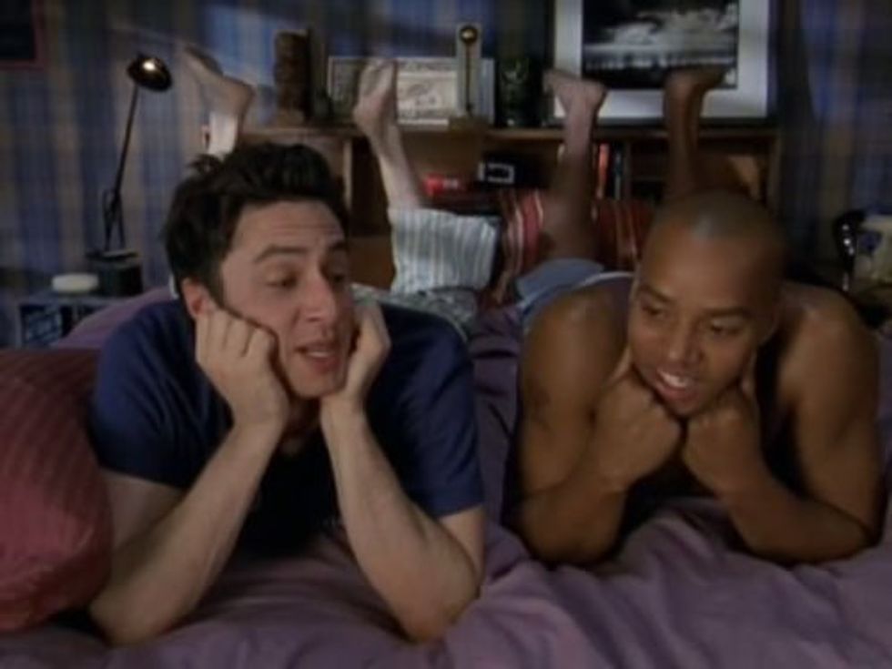 In October of 2001, American television was blessed by what has come to be known as both the most accurate and the funniest medically based show to date: Scrubs. Best friends John Dorian and Christopher Turk graced our screens, and we couldn't help but fall in love with their dorky love for each other. When I think "bromance," these two are the first to come to mind, even before Chandler and Joey. They will always be my favorite, and if you've ever watched the show, it's clear why. It's time to honor the two guys that show us just how cool it is when male friends love each other like any friends should!