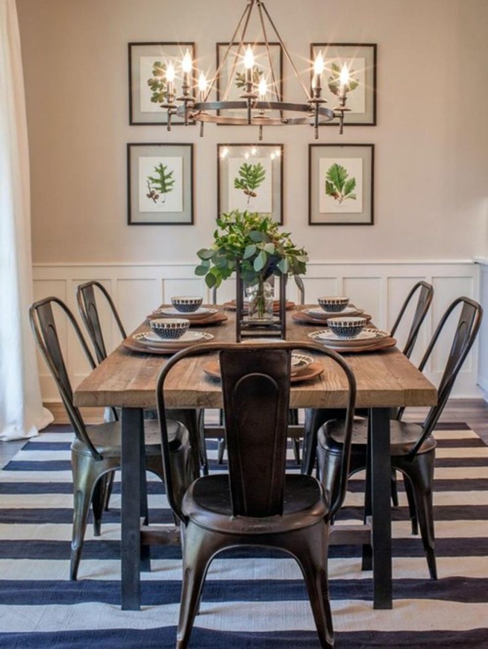 Joanna has a unique style of incorporating old items with new ones. Old antique chairs with a new handcrafted dining table. The dining rooms that she designs are simply but pretty.