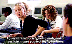 Kat is a feminist and isn't afraid to speak her mind. Especially when it comes to boys thinking they're better than her. Throughout the whole movie, she shows demonstrates that she will not let a boy push her around. Her self-confidence is award worthy.