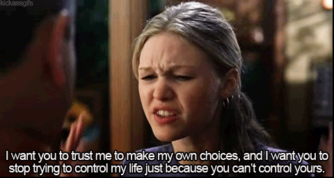 Parents are scary. But, Kat has been respectful her whole life and knows whats best for herself. The way she stands up to her dad is inspirational.