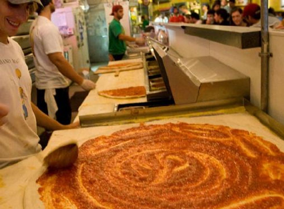 My then-boy-now-boyfriend asked if I knew what I wanted, and I realized I’d been so busy with sensory overload processing, I hadn’t even looked at the menu. It hung from a giant poster above the length of the bar that tripled as the register, order pick-up, and prep station for the pizza. Customers could watch as dough was hand-rolled into patches of flour, then put through gravity defying exercises of stretching into perfect circles. Circles – I quickly noticed – that were all the same size as the pie from before that was now getting tossed into the slit of the oven on a wooden paddle that was almost 3 feet wide.
