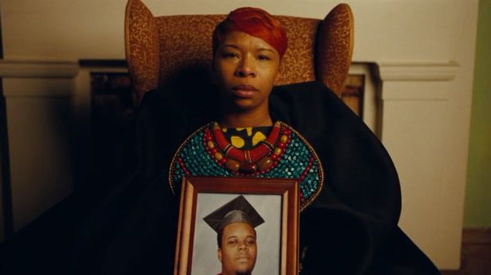 In the video for "Forward," a solemn James Blake sings while a series of black women are shown, holding pictures of black men that are no longer with them. Among those featured are Sybrina Fulton and Lesley McSpadden, the mothers of Trayvon Martin and Michael Brown.