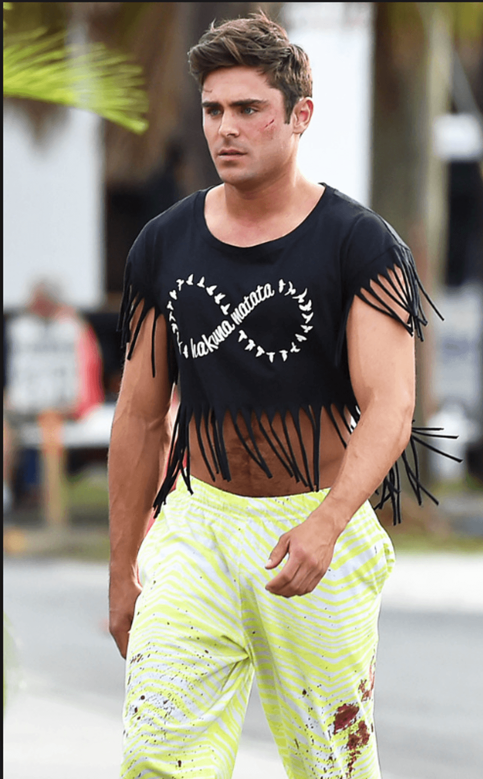 Okay, I'm not really sure what's going on here but it's Zac Efron showing off his muscles and abs. Thank you crop top, thank you.