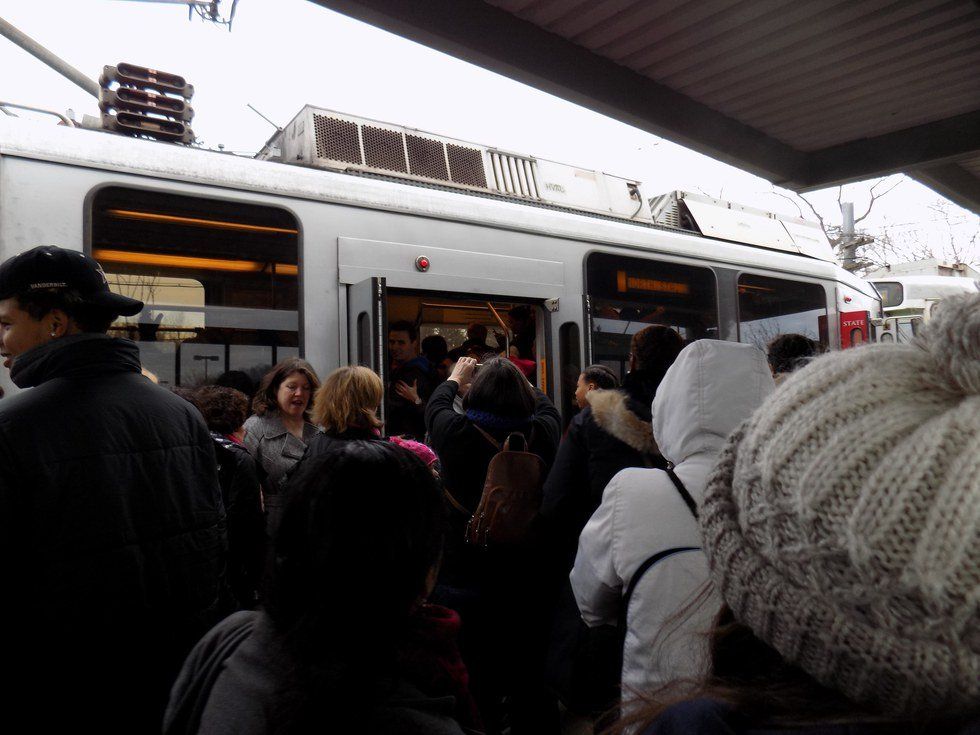 Before leaving my dorm something was different. The air was warm and silence was spread throughout the campus. A shuttle set up by a school club took students to the nearest T stop (aka subway). The man in the shuttle van yelled to us "Are you going to the march?" " Yes!" we said, "well hop in, this is amazing!"