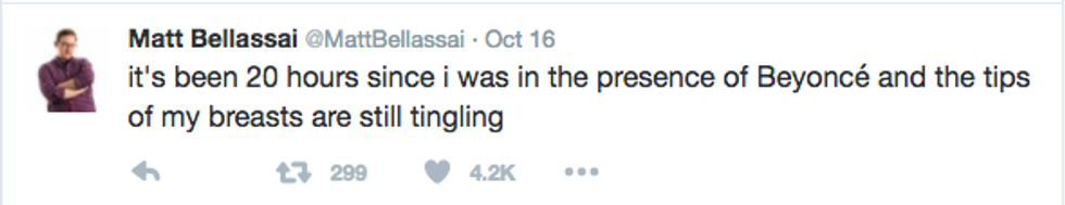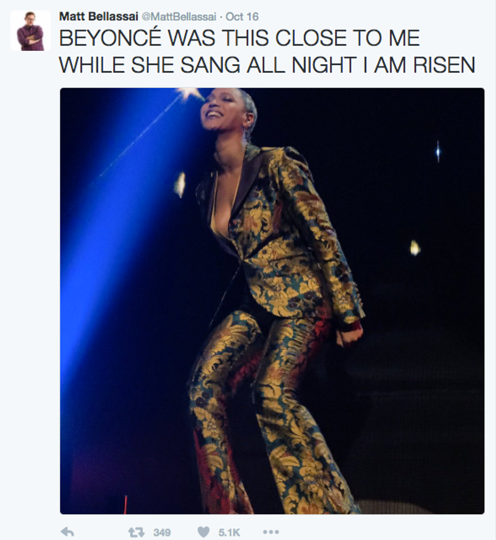 For those of us who know who Queen B is, then we all understand that seeing her perform is probably the best thing we will EVER see in our lives. Matt understands this.