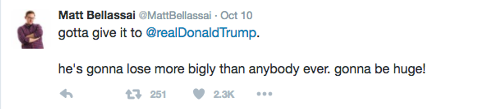 No matter your political views, and I personally do not care if I offend you because this is the internet. Everyone on the internet is morally offended. However, Matt Bellassai understands how we feel about this election cycle.
