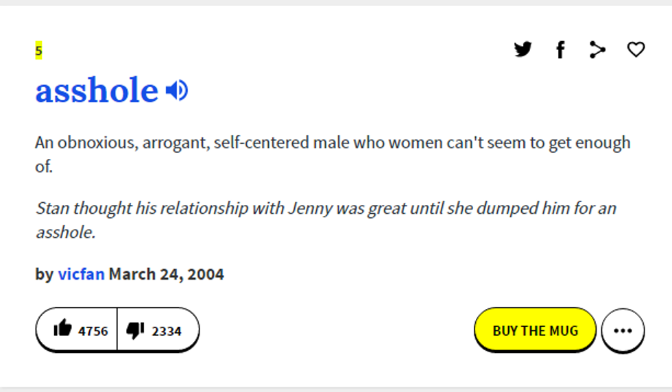 Countless tabloids, television shows, songs and films have enforced the idea that the typical male is unable to communicate, has the emotional capacity of a teaspoon, uses women to achieve some sort of “status” and is incapacitated by communication that requires more attention than they need to watch the EPSN Halftime Report. Women discuss these traits of their partners or spouses to their friends, and, unsurprisingly, they have had similar experiences in the not-so-distant past that instill this jaded perspective toward men. Even Urban Dictionary defines "asshole" as such: