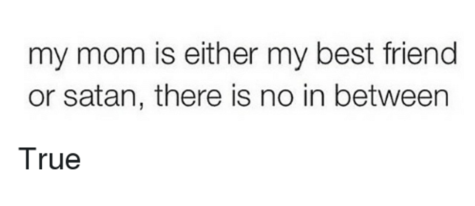 I'm lucky enough to have more than one "best friend," but I don't count my mom among them. That probably sounds a little sad initially, but I'll tell you why: I talk to my best friends about things I wouldn't talk to my mom about (e.g., things that would be weird to talk to my mom about, like "Look at [insert actor's name here]'s butt in that movie scene! WOW!" or something she wouldn't get, like video games. Also other things, but you know. Those). Sometimes my mom gets on my nerves (sorry, Mom, but I know I get on yours, too), and I talk to my friends about it. They not only help me sort through my feelings so I can approach the subject with a level head, but they give me the courage to actually bring it up with my mom if it's something that really needs to be addressed.