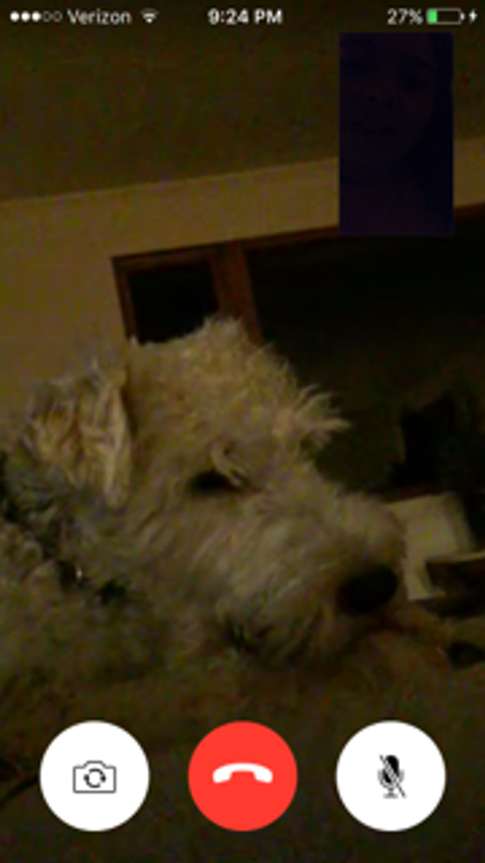 Even when I'm away at college, I always have one or two pictures of him in my room, including some funny selfies that I've taken with him. My dad and I also FaceTime on occasion and he will point the camera towards my dog, just to let me know he is there.