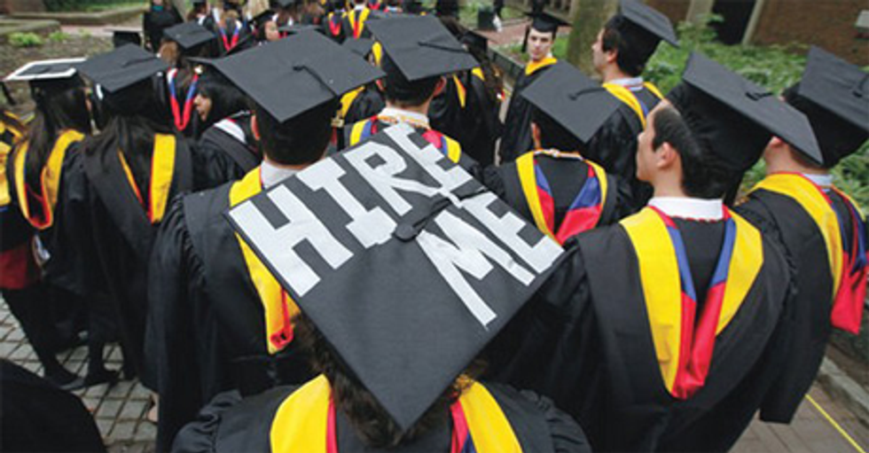 Now personally, I’m a writing major and a theater arts minor. Which means to the trained eye, I’m pretty much unemployable. But the good news? None of that matters, because it’s going to be freaking hard for anyone I’m graduating with to get a job.
