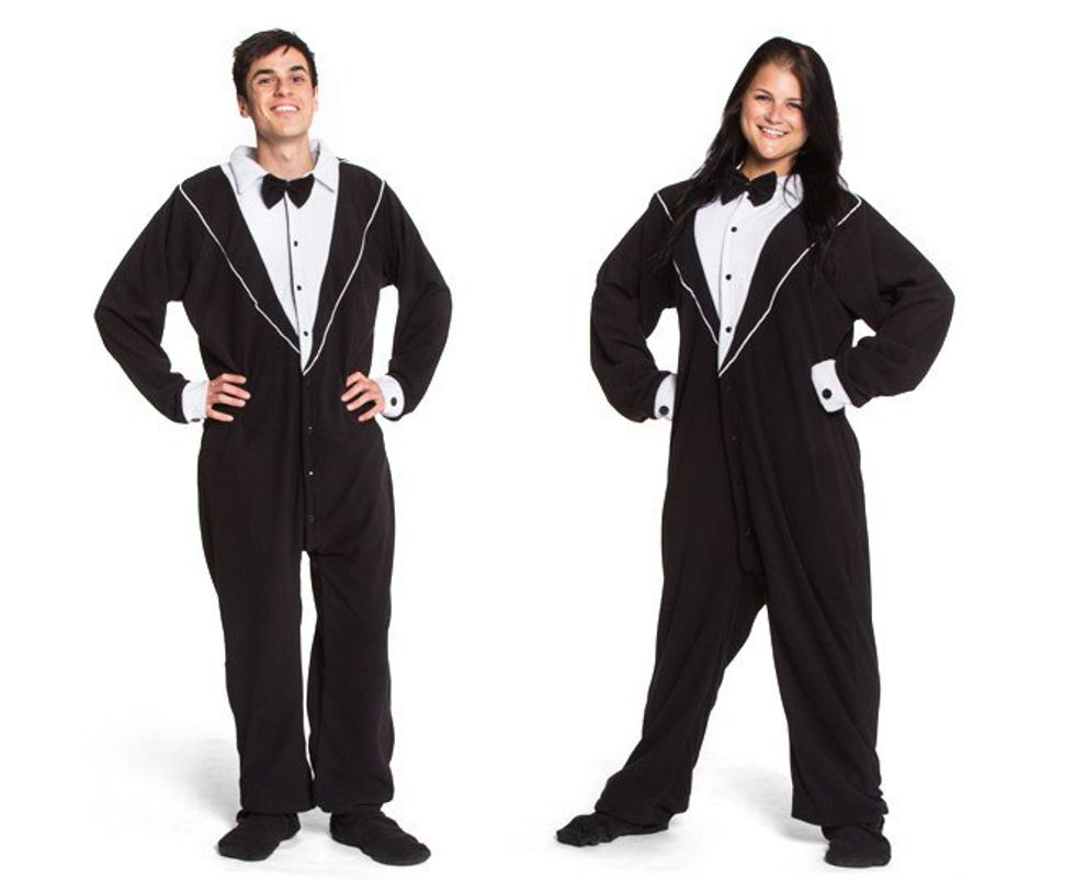But these onesie tuxedos prove all those people wrong. Onesies can be just as fancy as rompers. Actual tuxedos are expensive and probably extremely uncomfortable to wear for extended periods of time. Onesie tuxedos like the ones pictured above will fool everyone into thinking you're wearing a fancy suit while you get to keep your comfort level high.