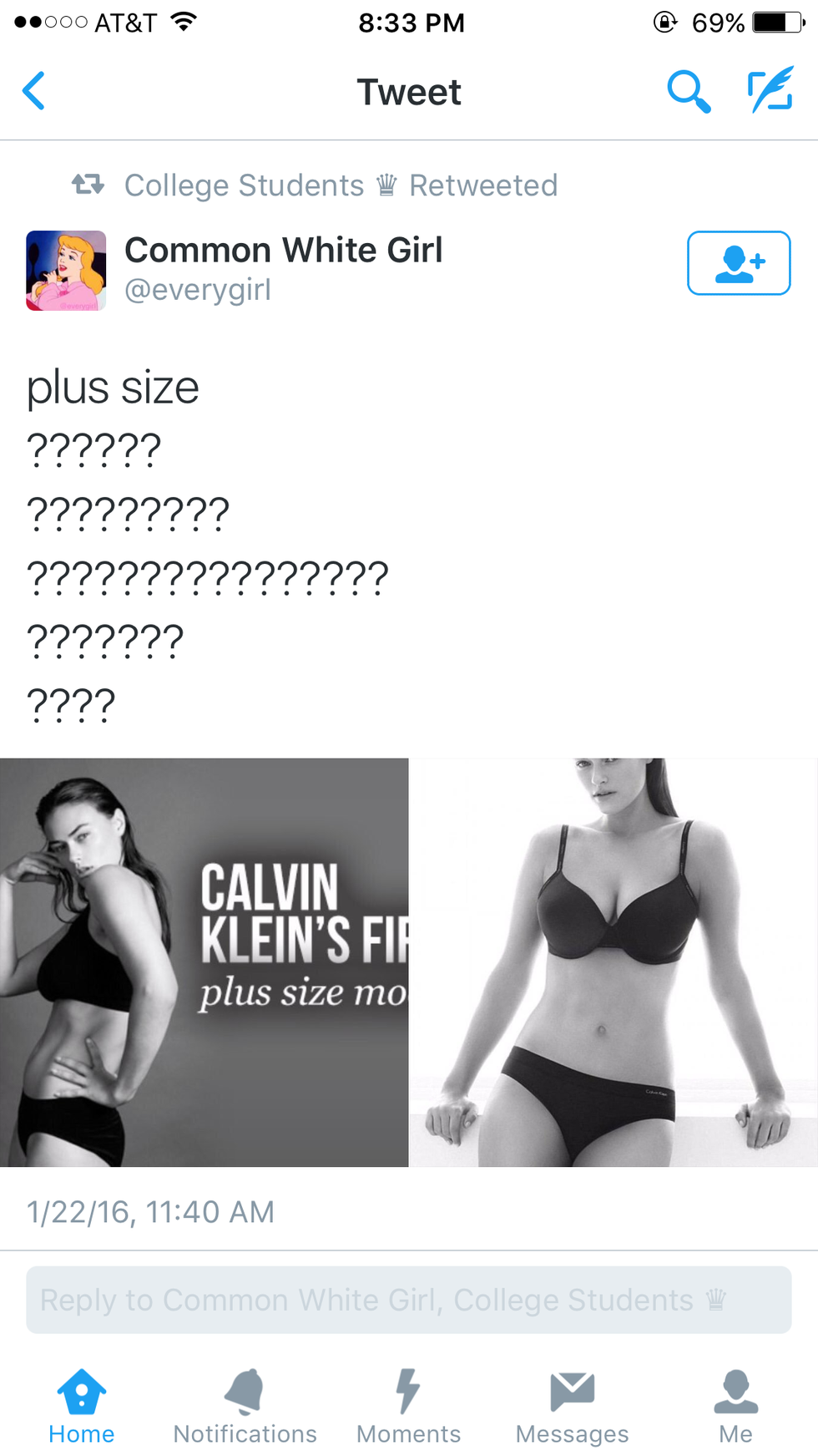 What society is doing is toxic to girls who read these magazines and go on the internet. Just last week I was on my Twitter when a tweet popped up about Calvin Klein...