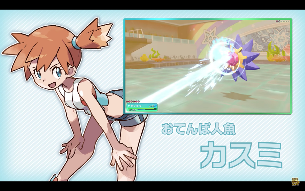 This is a screenshot from the official Japanese trailer where Misty looks like she's peeing. The peeing scene starts at 0:55 of the Japanese trailer.