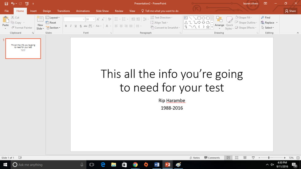 I'm sure you all remember sitting in the classroom when the teacher would roll the projector into the center of the room. It was this big, bulky black device that lay on top of a wheeled cart. You would hear a resounding groan from all corners of the classroom as students were forced to get out paper and pencils in order to transcribe the notes being projected onto the board. It was sometime in sixth or seventh grade that my teachers began relying on the newly bought software for the county, Microsoft PowerPoint; however it was still very rare for it to be used in the classroom, and it would usually be the same basic Calibri font on that boring, white background. It was between eight and ninth grade when the use of Powerpoints increased exponentially. Teachers were hailing it as the best innovation for education this century. It allowed teachers to create their own sets of notes that could easily be reused from class to class. Nowadays it's rare if I have a class in college without the use of Powerpoints that day. But are Powerpoints really an efficient tool to transfer knowledge in a succinct, time-saving way? No way, and here are a few reasons why.