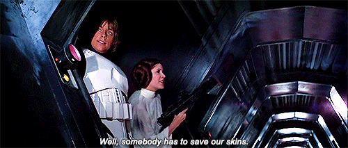 1. When she just got rescued by Han and Luke... and then decided to rescue them
