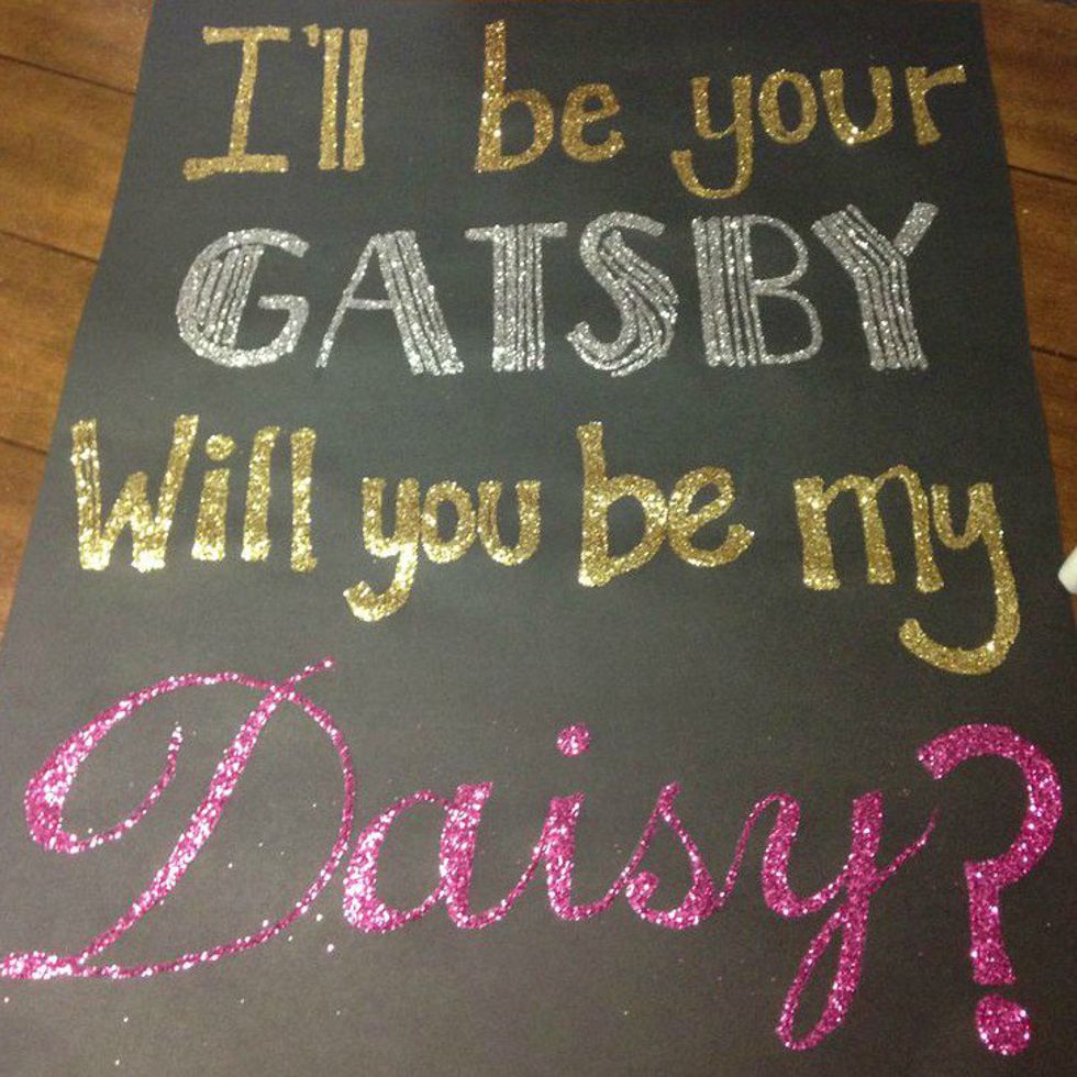 Some promposals get taken way out of hand. I know we live in an over-the-top age (shows like The Bachelor, Survivor, and Naked and Afraid are still going strong), and not to put that down, but it is evident in promposals that things need to be taken to the extreme or they lose their value. Hence the "Prom?" tattoo pictured above. I would have died if I was that girl, not from happiness, but from embarrassment. I hope that guy is/was her boyfriend, because otherwise that's insanely creepy. Some promposals are also ridiculously stupid, such as "I'll be your Gatsby, will you be my Daisy?" I don't think this boy read the book, or else he would know that Daisy was married and she and Gatsby were having an adulterous affair. I don't think that's the vibe anyone want to give off in a promposal, unless they're asking a a girl who already has a boyfriend. If so, then it's properly fitting.