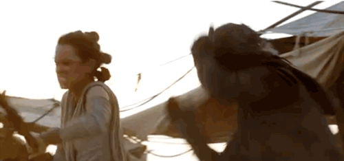 I often hear people complain about her ability to fly the Millennium Falcon so flawlessly. Did these people not see the film? One, the film hints that she has pilot experience not just through her dialog, but visually by showing her wearing the pilot's helmet and looking longingly at a leaving spaceship. Two, she doesn't fly the Falcon flawlessly. When she first tries to fly the thing she keeps accidentally dragging it on the ground and even smashes it into a gate. They say that she's too good at firing blaster, which she's never used. However, when she first tries to use the blaster Han (Harrison Ford) gave her she forgets the safety is on and gives her position away to the Stormtroopers and misses several times at first. People complain that she was too good in the final fight against Kylo Ren (Adam Driver), an experienced force user, and her inexperience should have kept her from winning the battle.