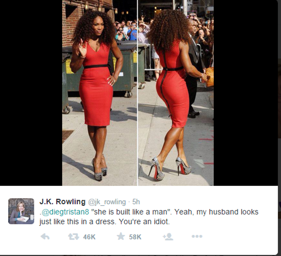 While it seems that many women tennis players along with others have turned their eyes away from the ridiculous surveillance of Serena’s appearance, some have chosen to speak out in her defense. Recently J.K. Rowling came to her defense when a man on Twitter said that Serena is “built like a man.” Her quick and witty response highlighted the absurdity of the constant criticism of Serena’s body.