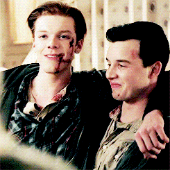 Ian's character development is probably the most important and obvious in the entire series. In the first episode, Lip finds one of Ian's nudey magazines, but when he opens it, he see's gay men inside. Ian struggles with his homosexuality and coming out, until Mickey Milkovich comes along. We fall deeply in love with these two as they continue to grow in love throughout the show, even though Mickey resists to be public because his father would never approve. When Mickey is forced to get married to a woman to under his father's orders, Ian runs off to the army, stealing Lip's personal information because he is not old enough. After months of his disappearance, he is found working at a gay bar in the city, while running from the army because the military is after him for trying to steal a helicopter. Unfortunately, we find out that Ian is suffering from bipolar disorder, in which he received from Monica (their mother). As his illness progresses, Ian suffers in denial, steals a baby and resists his medication, even though his family and Mickey are trying to help him. Depressingly, he leaves Mickey and learns to be alone. His near death experience introduces him to a group of gay firemen and he falls for Caleb. With the help of Caleb, Ian strives to fight his illness and becomes an EMT.