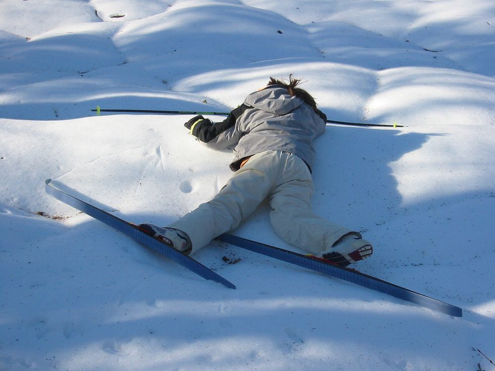 Skiing challenges every natural instinct you have. When walking downhill, we typically lean back. On skis if you do that you will fall. If we get to going too fast for comfort in a car or on a bike we hit the brakes. If you try to suddenly stop on skis, you'll fall over. We tend to be afraid of falling, but falling in fresh powder bundled up in layers really isn't painful, and if you wear a good helmet and don't hit any people or trees you'll be fine. It's just a matter of mind over matter, and being willing to fight the fear with a smile as you head down the mountain.