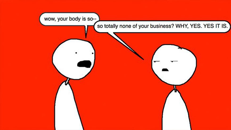 So how is skinny shaming any less offensive than the old term "fat shaming"? Answer: It isn't. The solution for this offensive term to drop out of the vocabularies of people is to stop all body shaming. Do not comment on someone's body fat, no matter how much or little they have. Women have more to offer than simply their bodies, and not all men are looking for curves. Stop making curves vs. skinny a competition; all bodies are different, and every woman is beautiful in her own way.