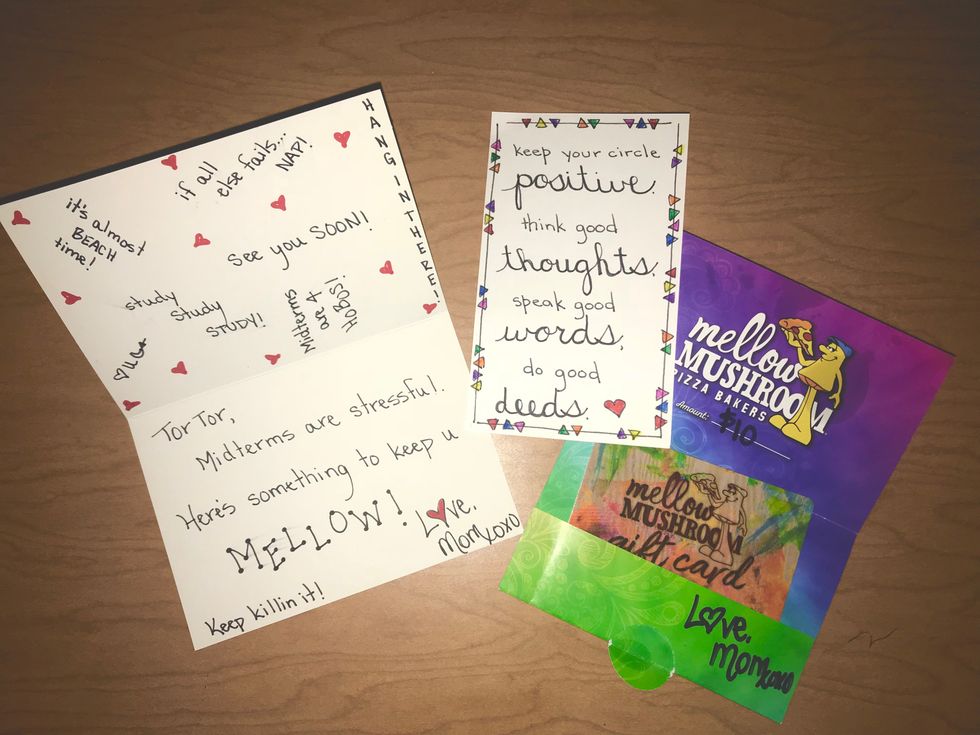 The note of encouragement and Mellow Mushroom gift card I got from my mom today? Arrived perfectly in time for my hardest day of midterms.