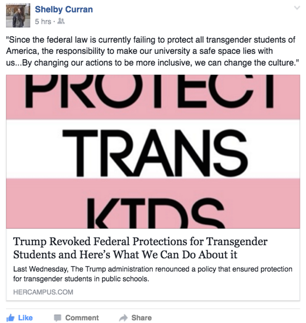 After the Trump administration revoked federal guidelines that once granted the right for transgender students to use public school restrooms that correspond with their gender identity, social media has had something to say. People have taken to social media to express their opinions. Yes, the place that you will find cat videos and gifs is the same place that is being looked to for more than just a good laugh. Social media gets a bad reputation for being vain, meaningless, and trivial. We have heard stories of the dangers of social media and the bullying that occurs online, but in this moment, with all that is going on, it is important.