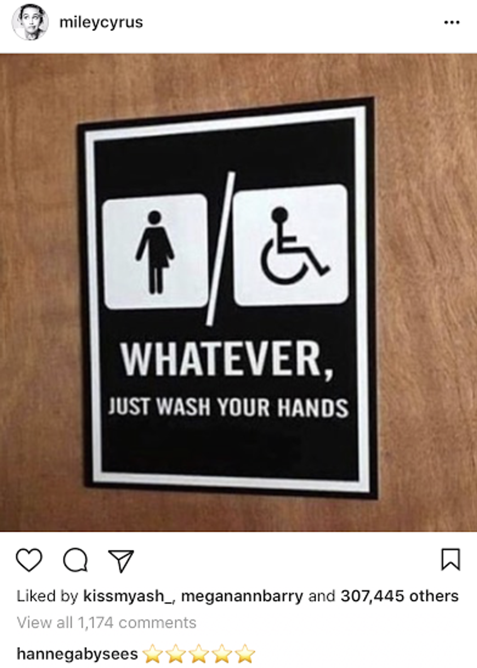 Miley Cyrus is an avid supporter of LGBTQ rights which is obvious through her social media posts and founding of The Happy Hippie Foundation. With 61 million followers, she is able to express her feelings on the topic to fans all over the world.