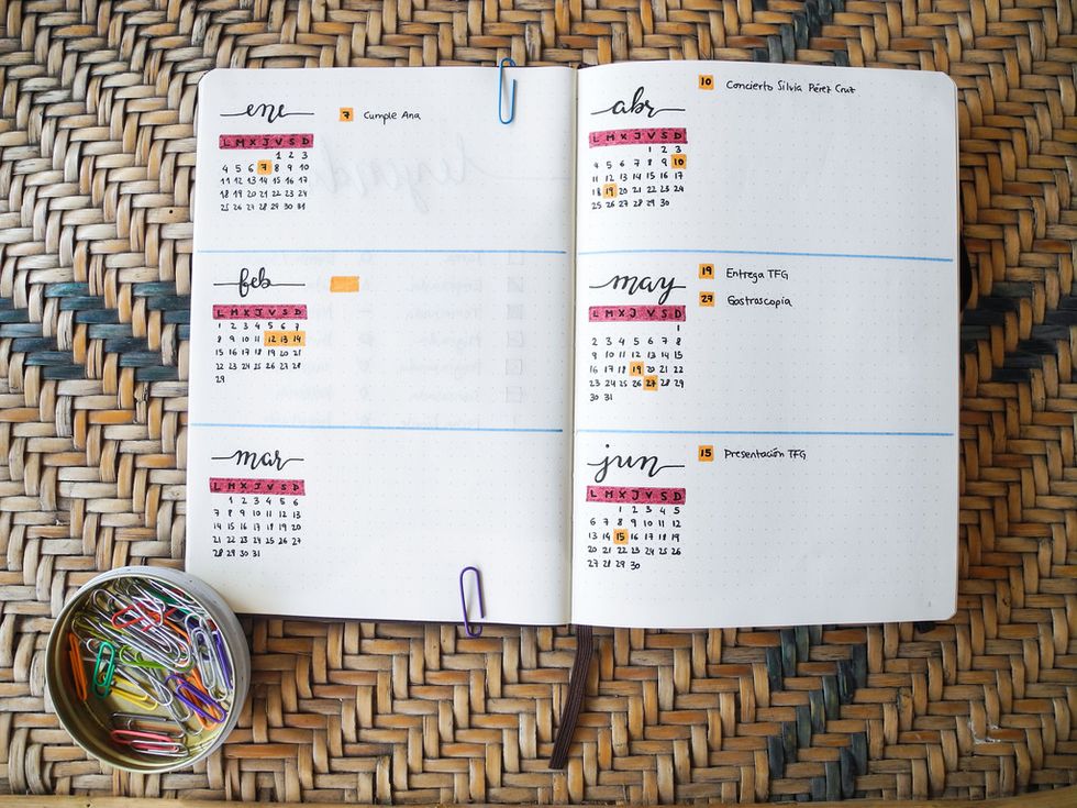 Bullet journaling is essentially where you get a blank journal, some come with dotted or blank pages, and can make your very own agenda book. One that helps keep you up to date with what you have going on in your life or use to help your creativity flow.
