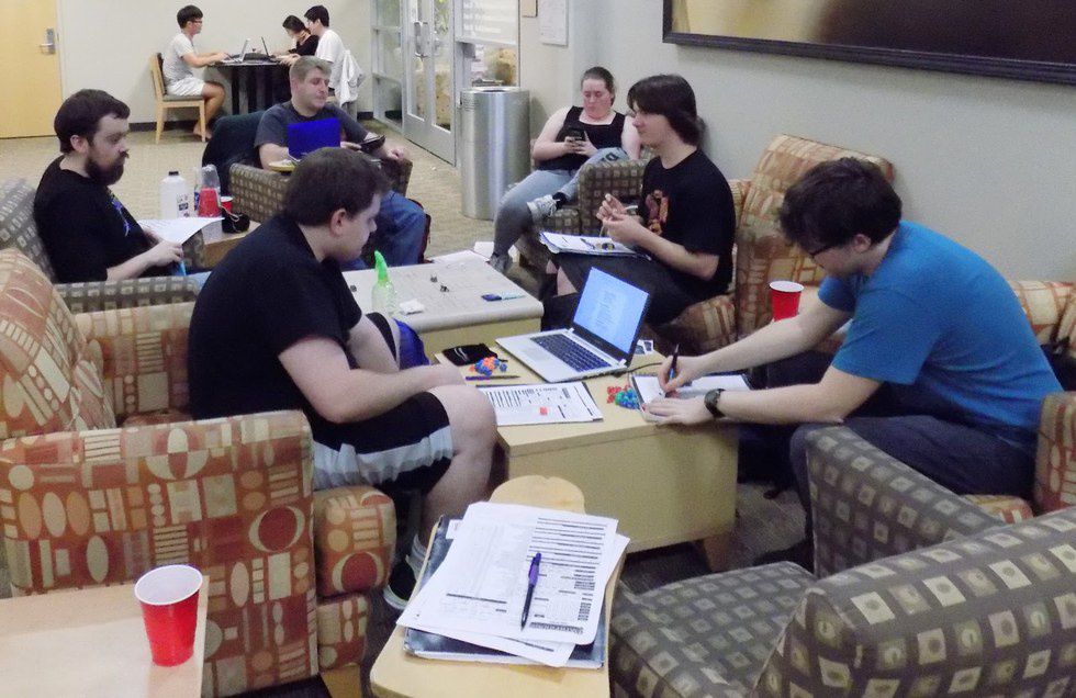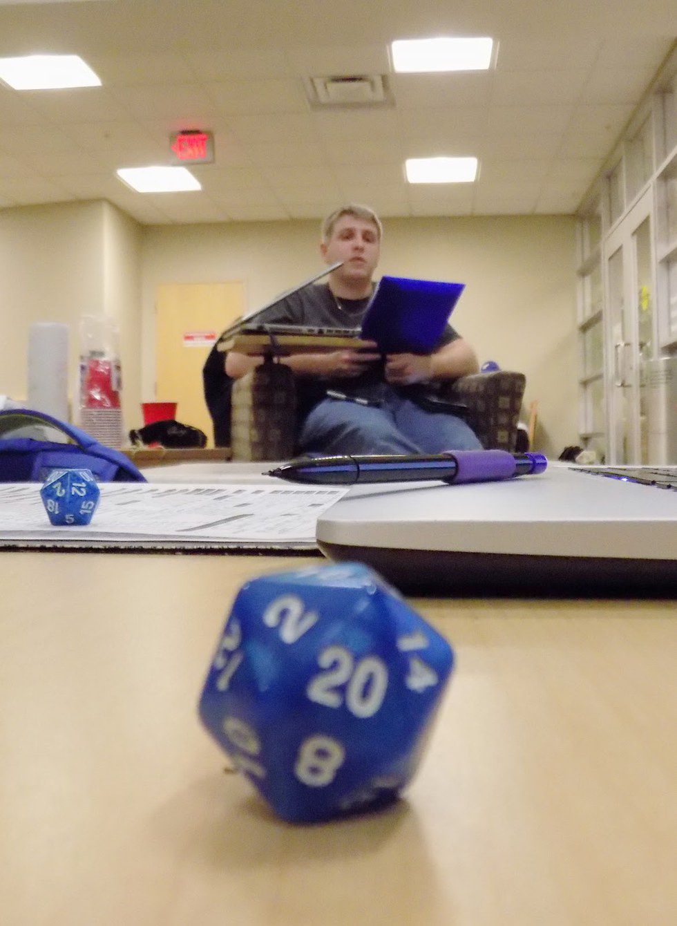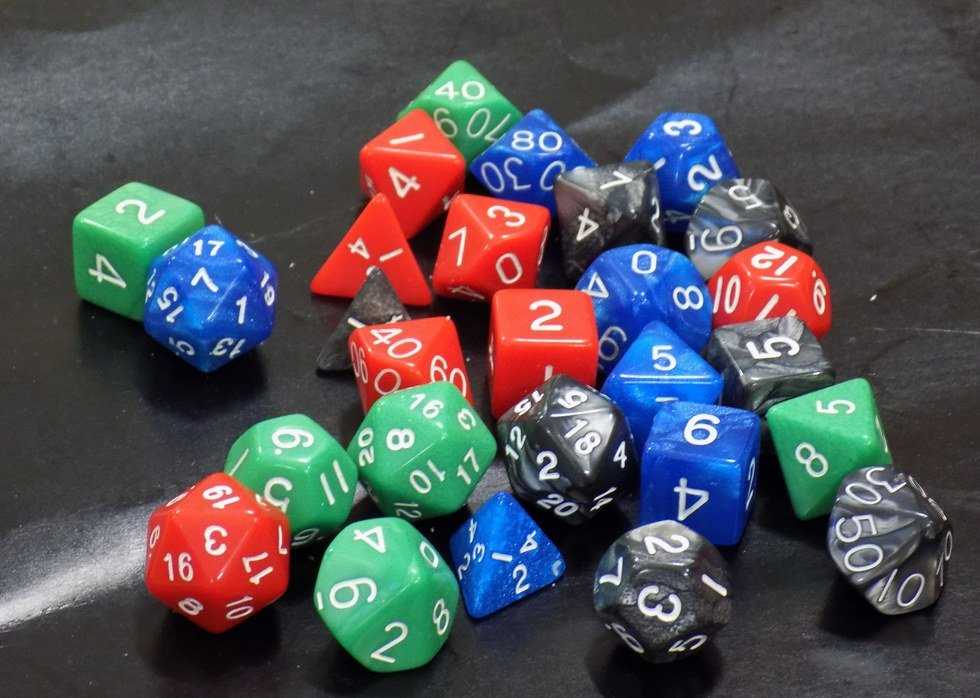 The events in the game are randomly generated by rolling dice. A standard set of dice has seven dice, each with different numbers of sides that range from four sides to 20 sides. Not only does each character have to react to the situation presented to them, but they also have to react to the roll of the dice. The randomness of the game creates an improvised dynamic that creates real relationships between characters within the story.