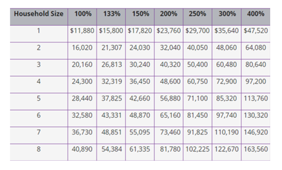 For visualization sake, here is the max you can make in a year to be eligible for Medicaid: