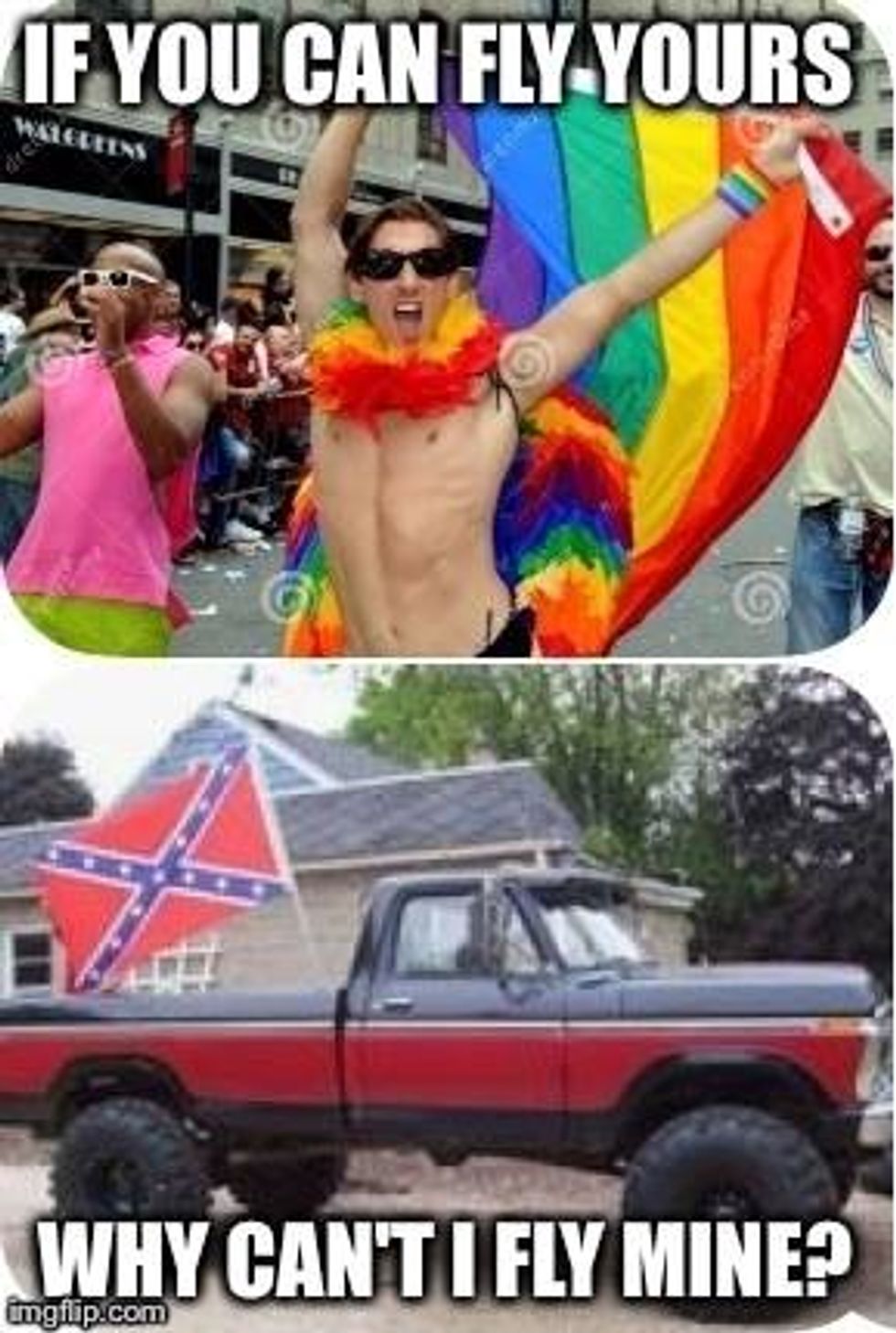 With the raising of the Pride Flag and the falling of their heritage-soaked Confederate Flag, conservative Christians took one blow after the other. Coincidentally, both movements were championed by their respective flags, which gave conservatives the chance to voice their opposition to gay marriage and simultaneously defend their "heritage" with one picture: