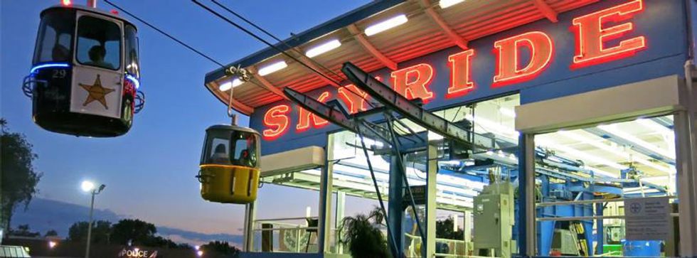 8. See the fair from a birds eye view with the Skyride. The Skyride is a structure that is suspended above the Minnesota State Fair. Take a ride on the Skyride and see all of the fair from an aerial view hundreds of feet up.