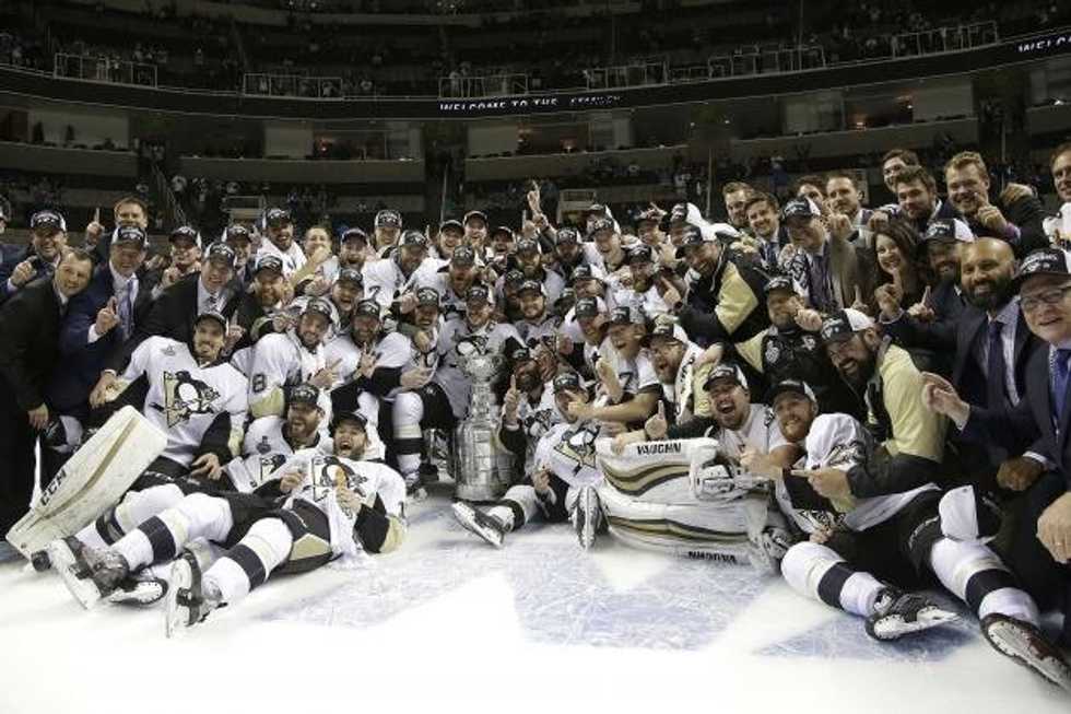 Pittsburgh got it's 4th Stanley Cup last night in a 3-1 rout of San Jose, giving them a 4-2 series win. That's Big Metal Trophy #15 for the Steel City, aka the City of Champions, where the Pirates have accumulated 5 World Series titles (Last one: 1979), the Steelers have 6 Lombardi's (Last one: 2009), and the Penguins now have 4 Stanley Cups (Last one: Last night!!!). How did they do it? Well: