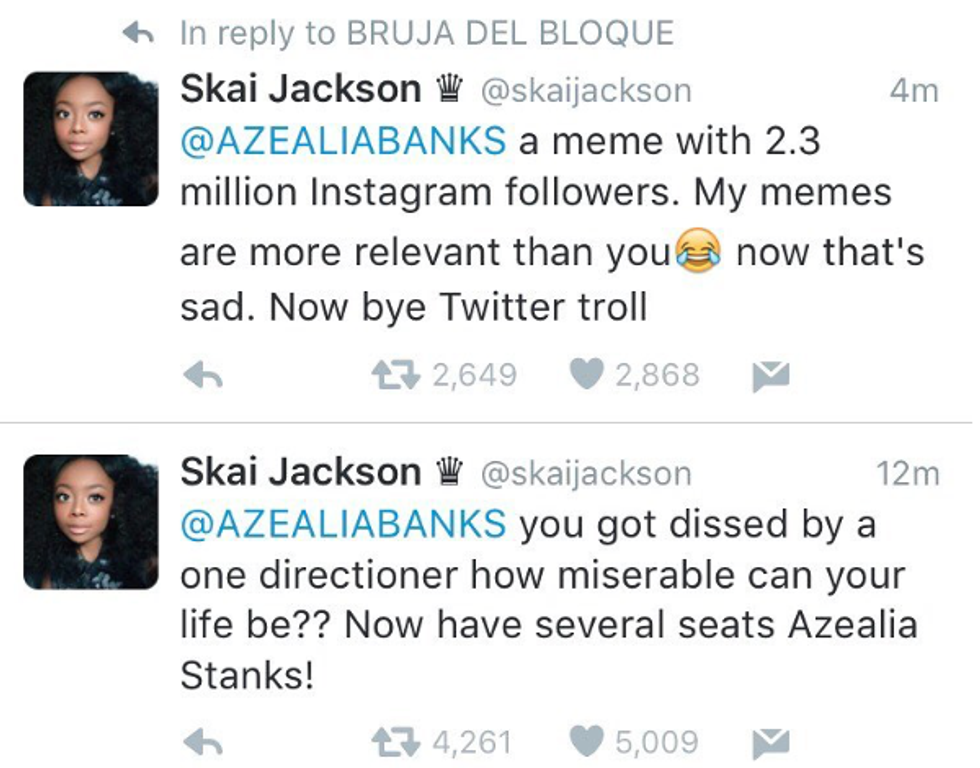 On May 10, Twitter was blazing from a “tweet war” that started between hip-hop artist, Azealia Banks, and 14-year-old actress, Skai Jackson. The war between Banks and Jackson that ended up causing Banks' Twitter account to be removed, ensued when Banks called out former One Direction member, Zayn Malik, for stealing concepts from her music videos and using them in his own. I personally cannot blame Banks for being upset by this as some parts of Malik’s music videos looked exactly the same as hers, and Banks has sacrificed her entire career by speaking out (in sometimes inappropriate ways) against appropriation.