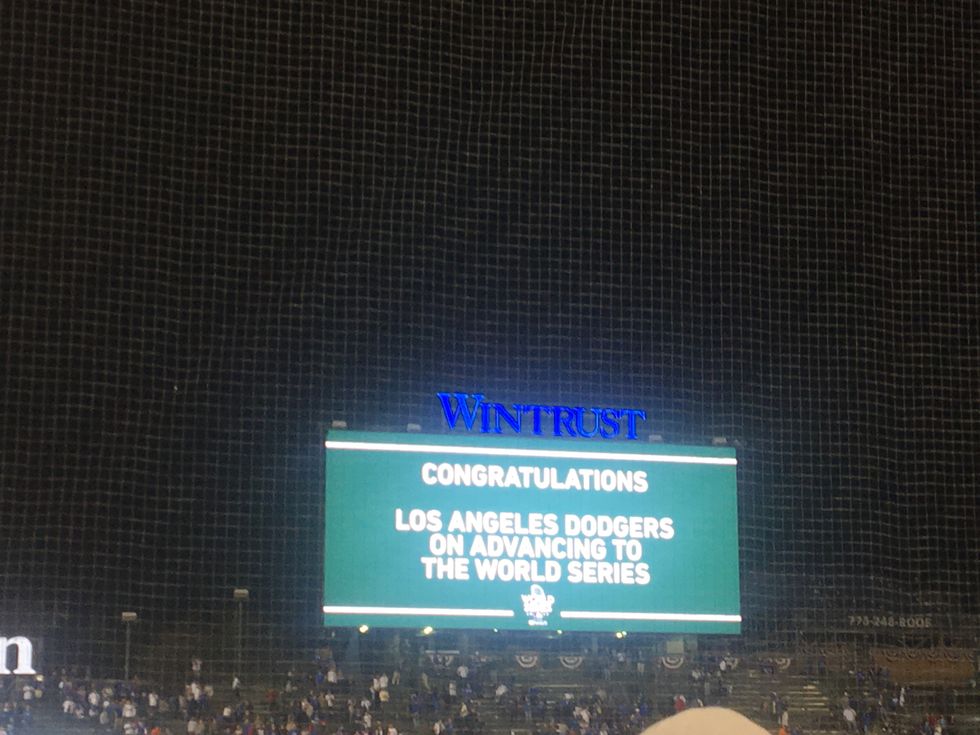 It’s all of these reasons that I sat and thought about last Thursday as my mom and I sat at game five against the Cubs at Wrigley field. By happy accident or divine providence (take your pick) we had scheduled to be in Chicago for my fall break when my amazing dad who wasn’t on the trip was able to score field level tickets to the clinching game. Surreal doesn’t even begin to describe what being at the game and watching the Dodgers crush the Cubs and clinch the NLCS title felt like. As my mom and I stood around and did happy dances with all other LA fans in attendance, I couldn’t help but stop and think about what an amazing team this is. Win or lose, I am so proud to be a Dodgers fan not because we’re a winning team, or because we’re a team of firsts, but because this team represents everything that I hold most dear. My hometown LA, its people, and most of all the Dodgers represent what I love most about my family. My family’s dedication and work ethic, it’s loyalty to each other and to the team we love most, and above all, the passion that springs forth when you bleed Dodger blue.